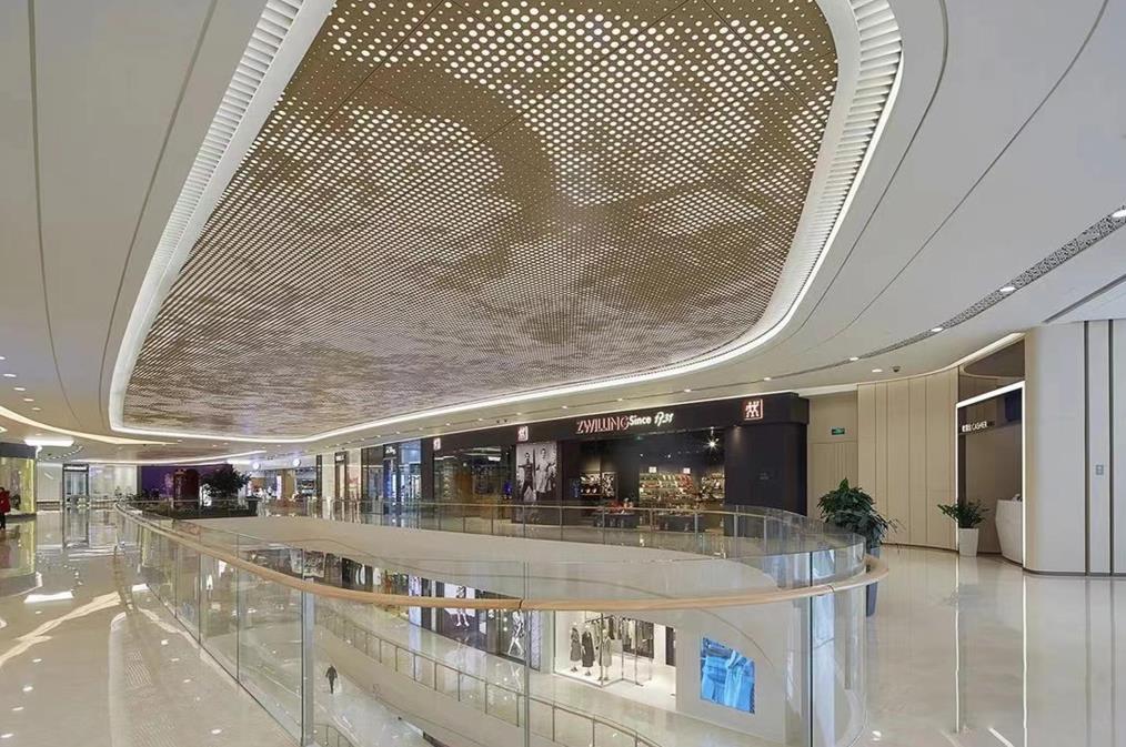 金属拉网配合金属框骨架形成通透式的天花板...